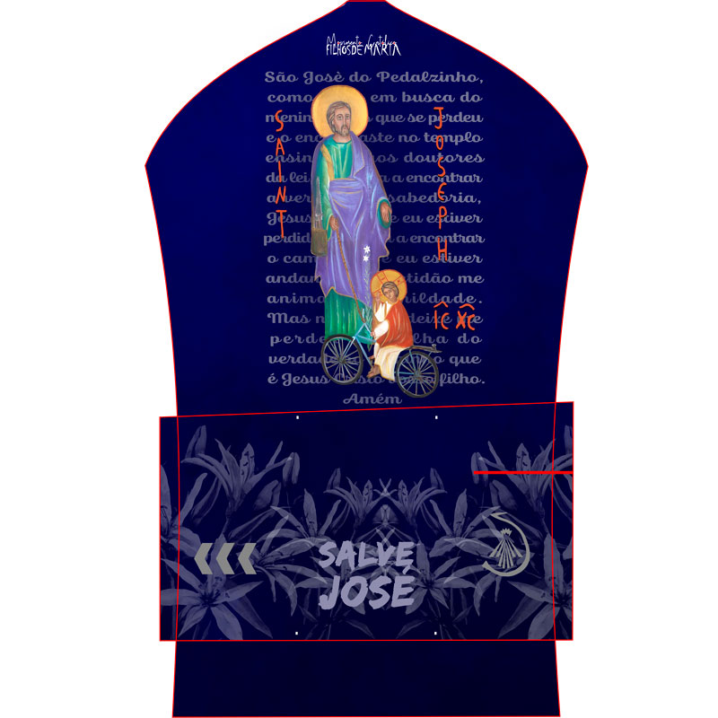 • Sistema refletivo nas costas em alto relevo com a logo de Nossa Senhora, logo Movimento FilhosdeMaria