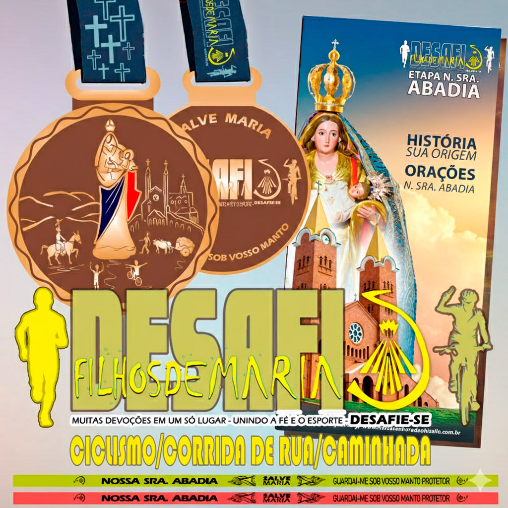 Desafio FilhosdeMaria tem como objetivo fomentar esporte e a evangelização ao mesmo tempo, unindo a Fé Católica com a pratica esportiva. Cada etapa conta com itens devocionais exclusivos + material de meditação, orações e historia completa da origem devocional.