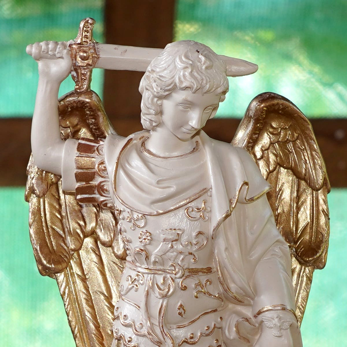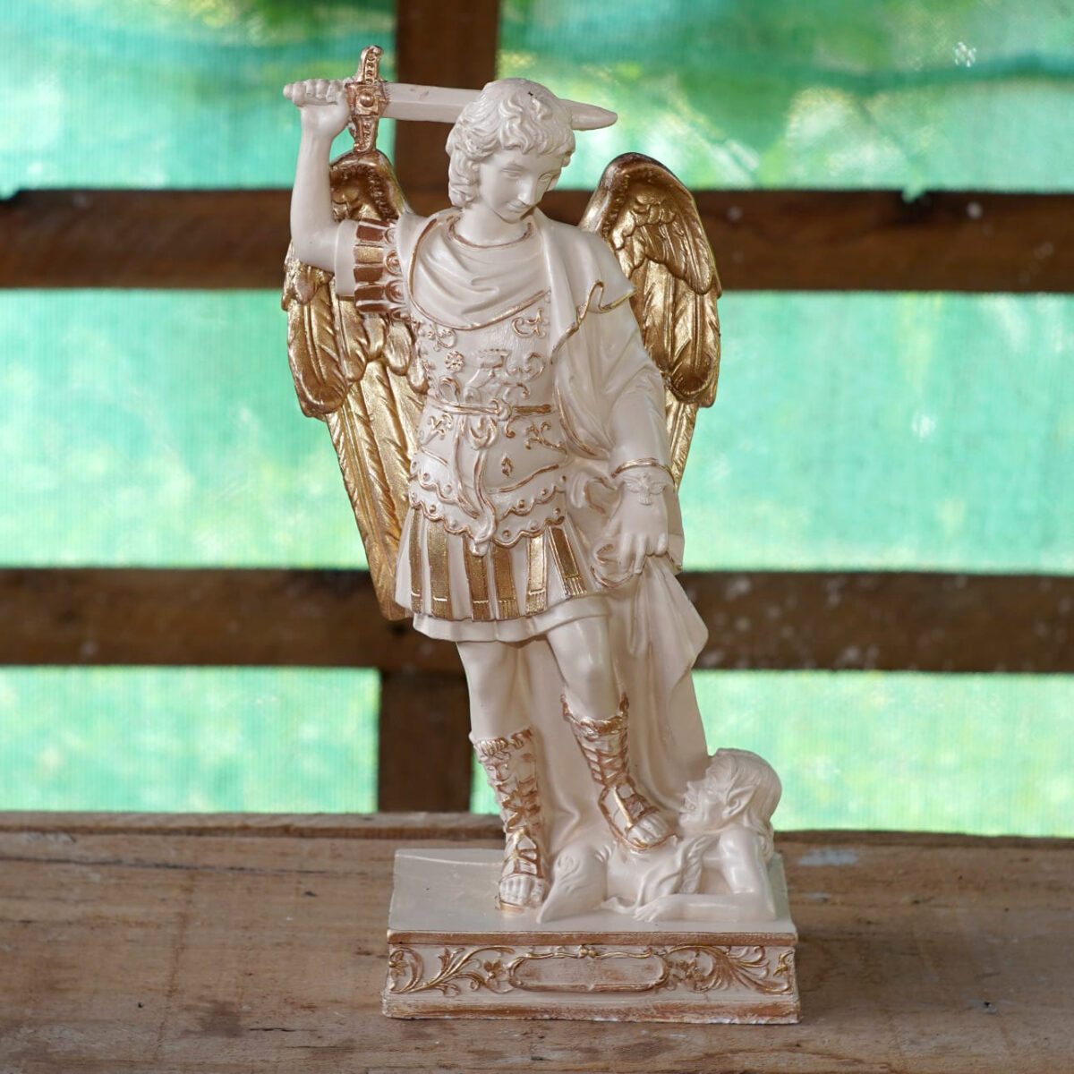 IMAGEM SÃO MIGUEL ARCANJO 37CMx18CM DETALHE FOLHA DE OURO