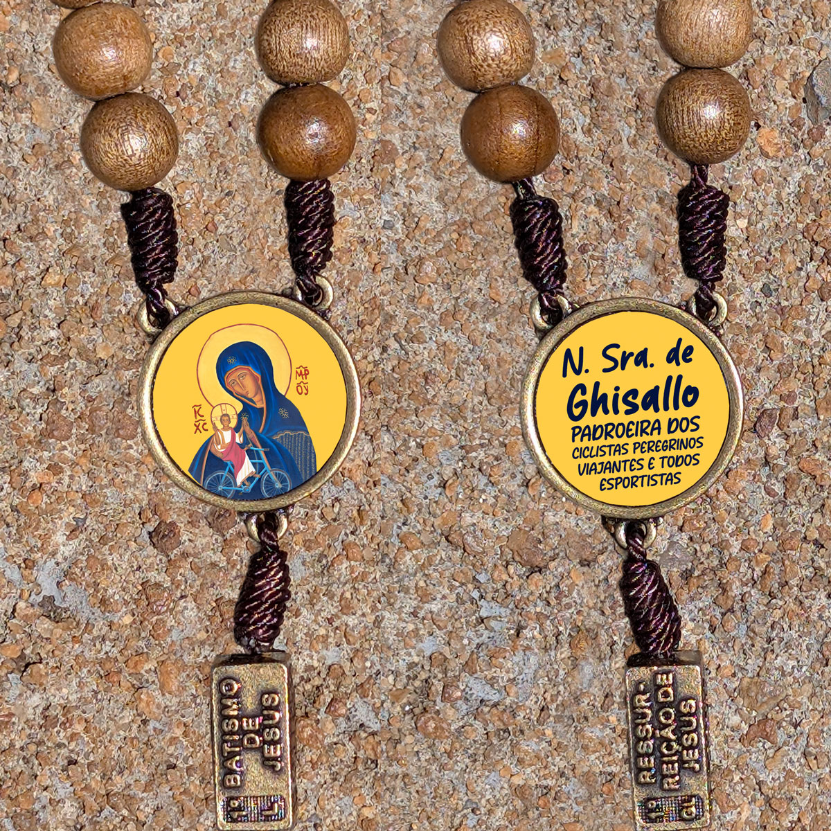 Terço de Madeira/Metal/Resina ideal para momentos de oração e devoção. Possui misterios em metal com gravação em alto relevo dos mistérios gozosos luminosos, dolorosos e gloriosos, reze sem a necessidade de um livro, pois esse terço de Nossa Senhora de Ghisallo já possui gravado todos os santos misterios. Medalha religiosa e crucifixo detalhado, perfeito para uso pessoal ou como presente especial.